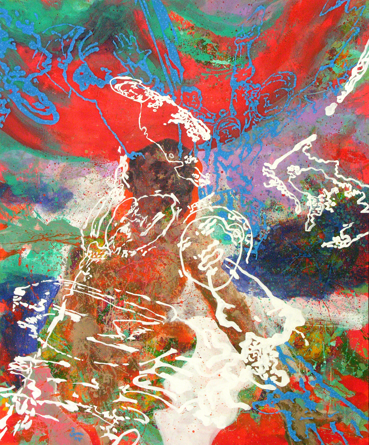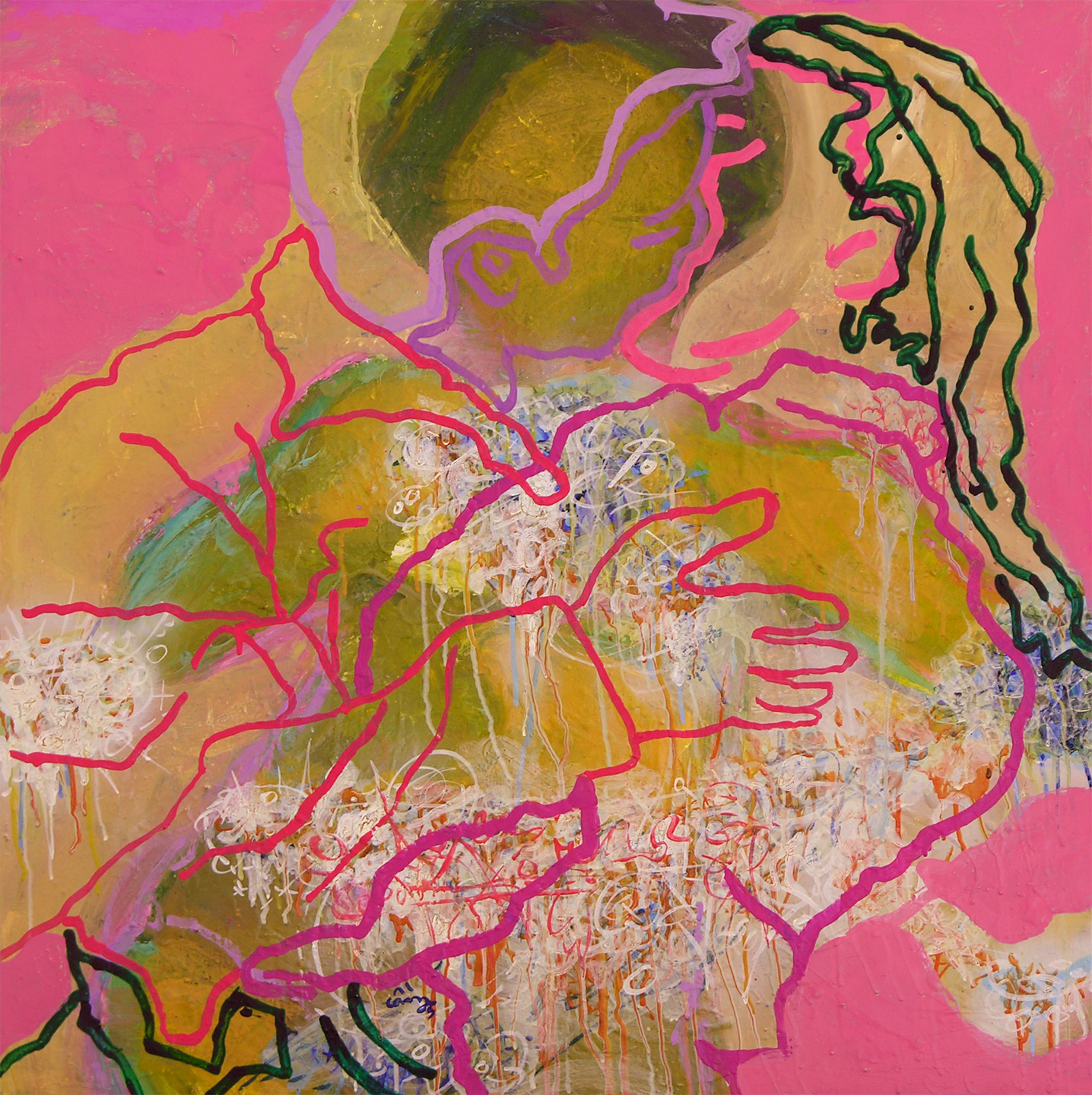 The layers of image on canvas seems to frame each other,
