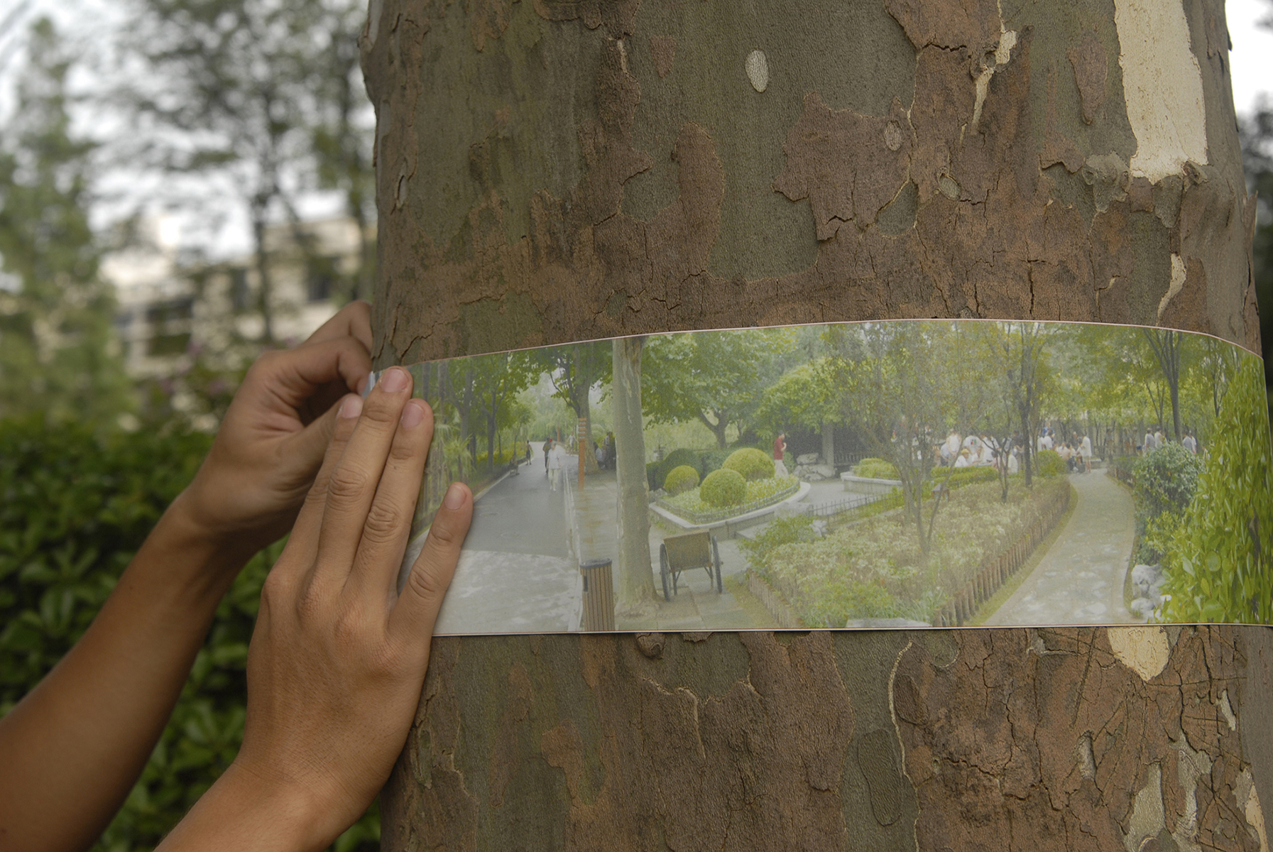 combined and wrapped as a ring around that same tree. It creates an image framed by its own landscape but at different moments,